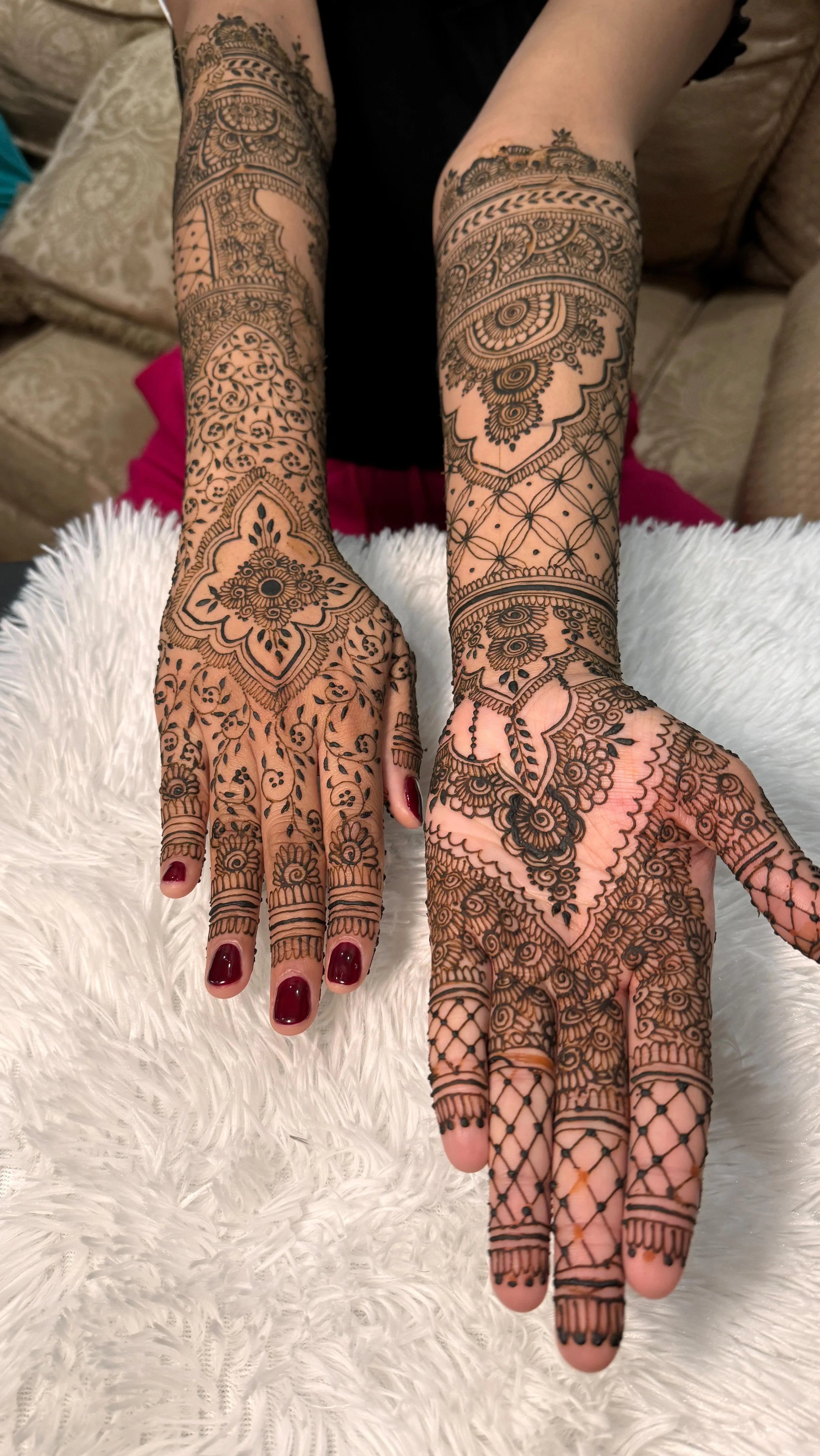When I came back home I applied it to fellow classmates, family, and friends just as a hobby, until I got offered to do henna for commission for a event at a local gym, and the rest is history.